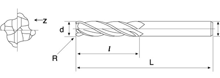 直徑d 刃長l 全長L 柄徑D 有效長L1 R徑 包裝數量 |