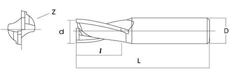 直徑d 刃長l 全長L 柄徑D 刃數Z